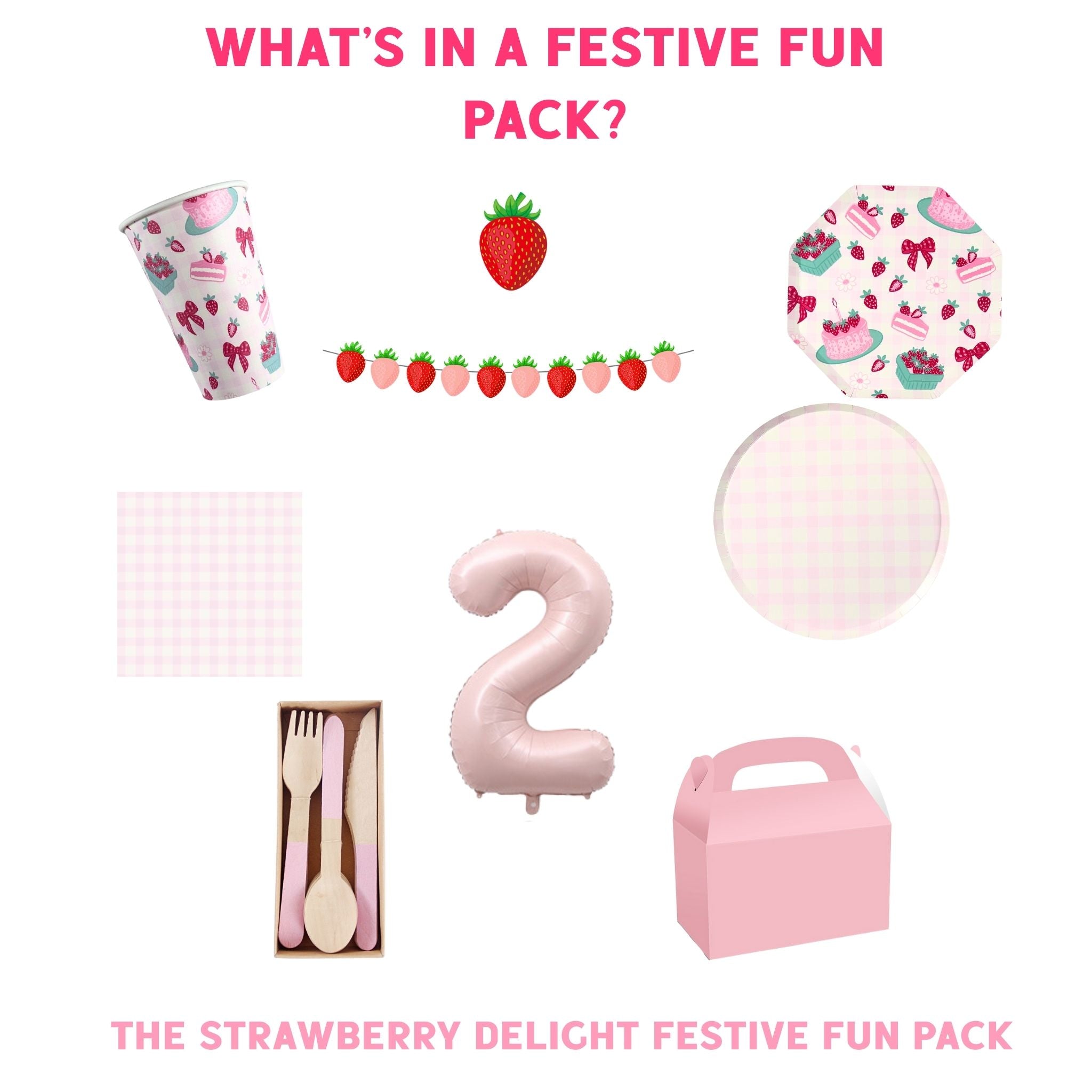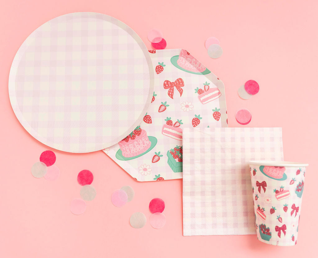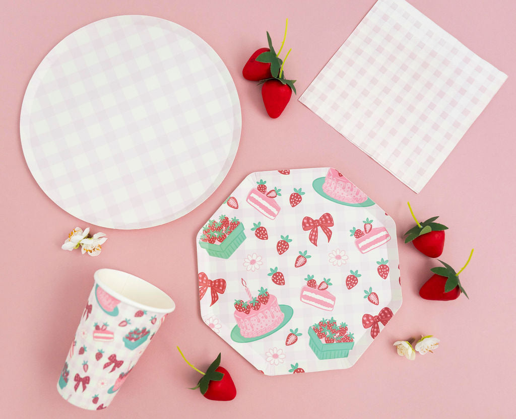 Create the sweetest party setup in minutes with this berry-themed bundle featuring strawberries, pink gingham, and charming pastel accents — no mixing, matching, or planning required.