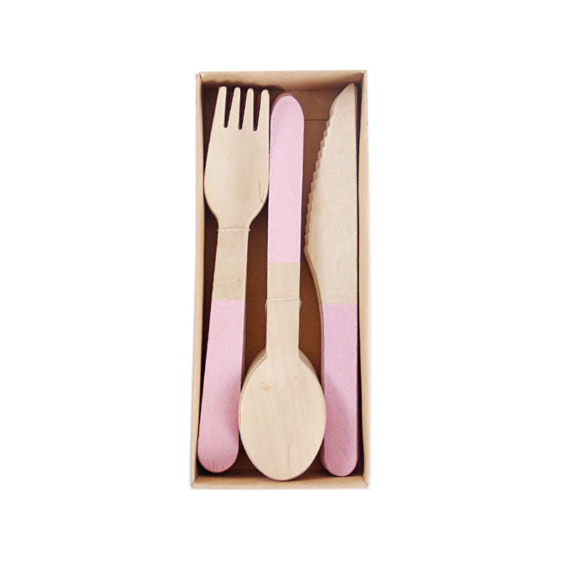 • Pink Wooden Utensils – 24 total (8 forks, 8 knives, 8 spoons)